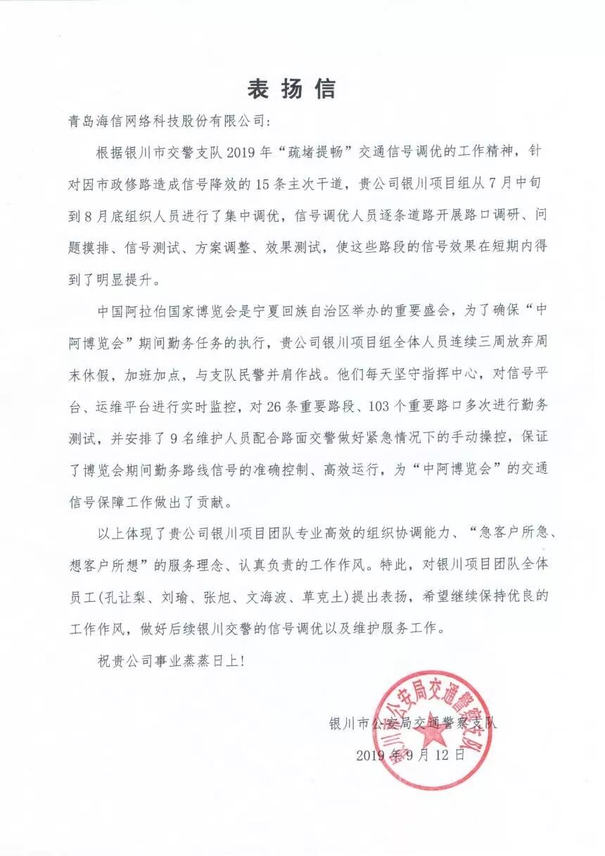 這不是銀川團隊第一次執(zhí)行如此重大的保障任務(wù)了,2018年的寧夏回族自治區(qū)成立60周年大慶期間,海信孔讓梨率領(lǐng)的團隊就以圓滿的保障任務(wù),收獲了業(yè)主高度贊揚。今年銀川團隊憑借雄厚的經(jīng)驗、出色的業(yè)務(wù)能力和認真負責的態(tài)度,再次直面挑戰(zhàn),協(xié)助業(yè)主挑起大梁,最終收獲圓滿。業(yè)主在表揚信中如是說:“海信在保障活動中的表現(xiàn)體現(xiàn)出了公司運維服務(wù)團隊‘急客戶所急、想客戶所想’的服務(wù)理念以及項目團隊專業(yè)高效的組織協(xié)調(diào)能力、認真負責的工作作風。”