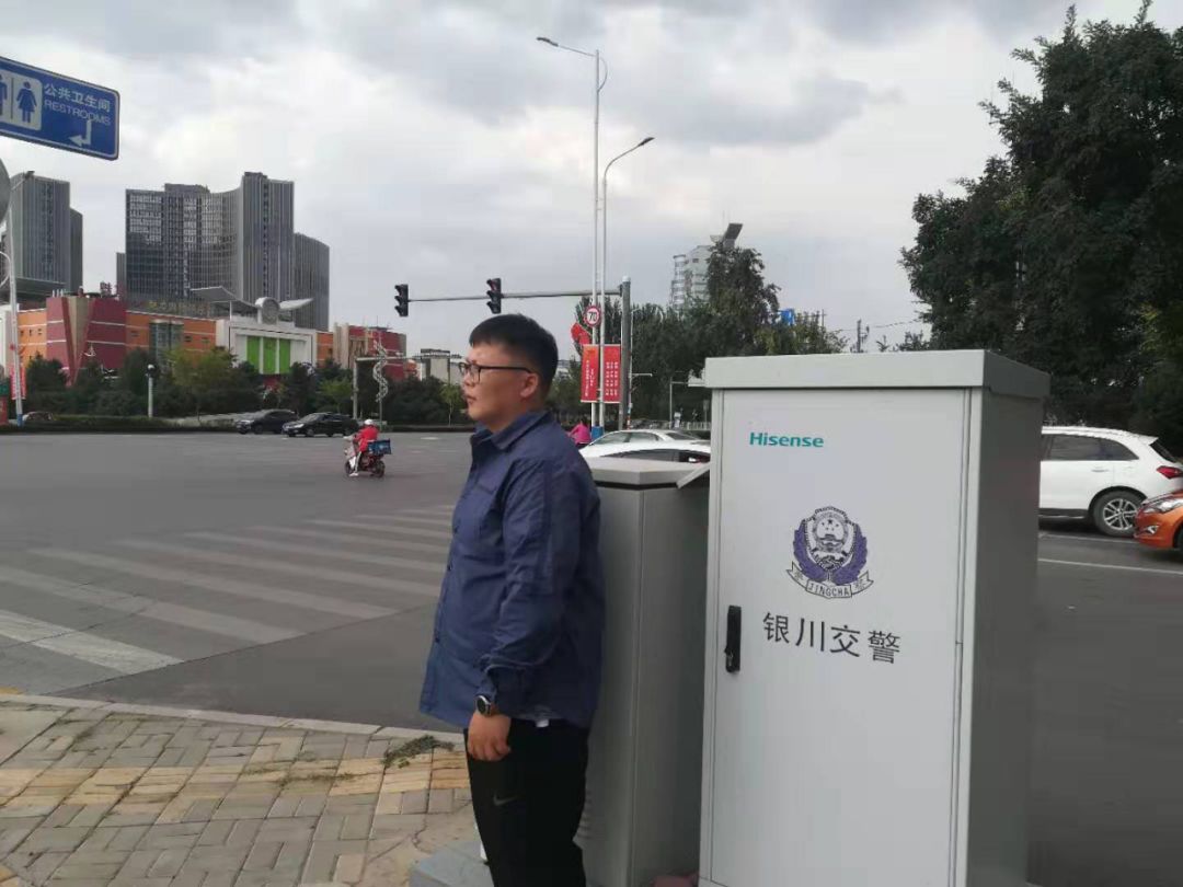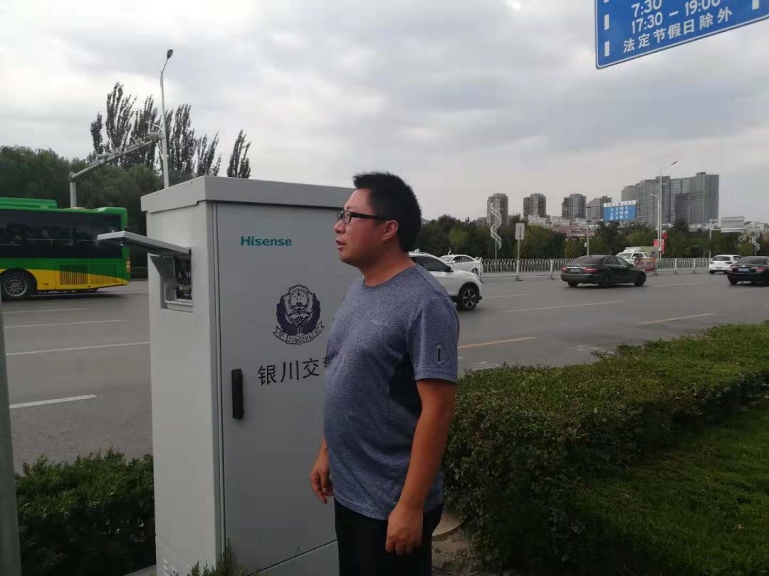 圖:海信銀川項目工程師在路邊執(zhí)勤演練